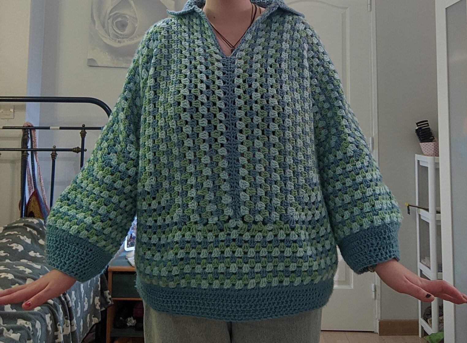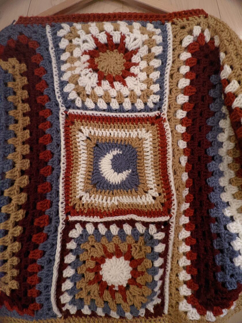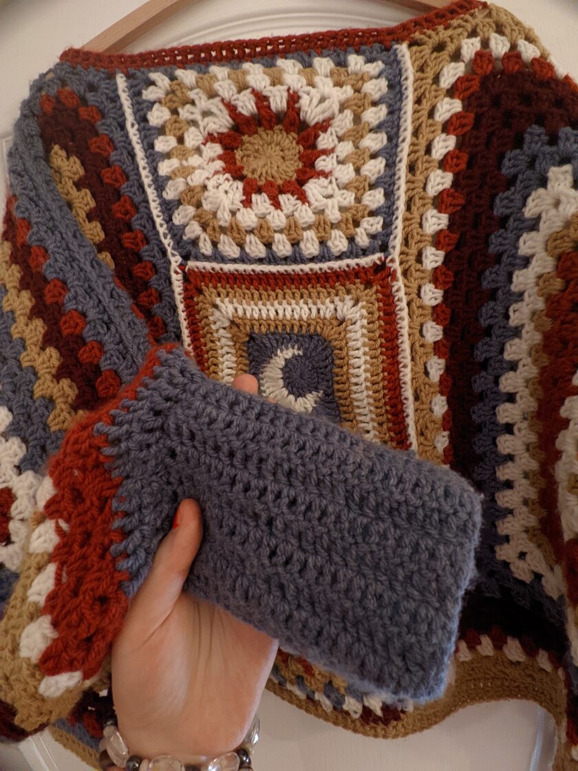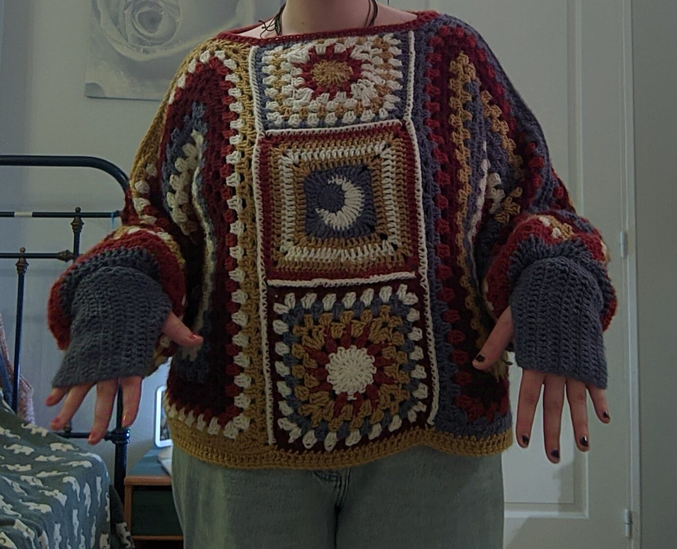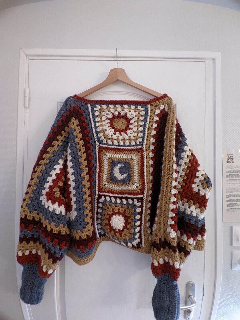 Pull soleil/lune d'automne avec détail des manches type mitaines
